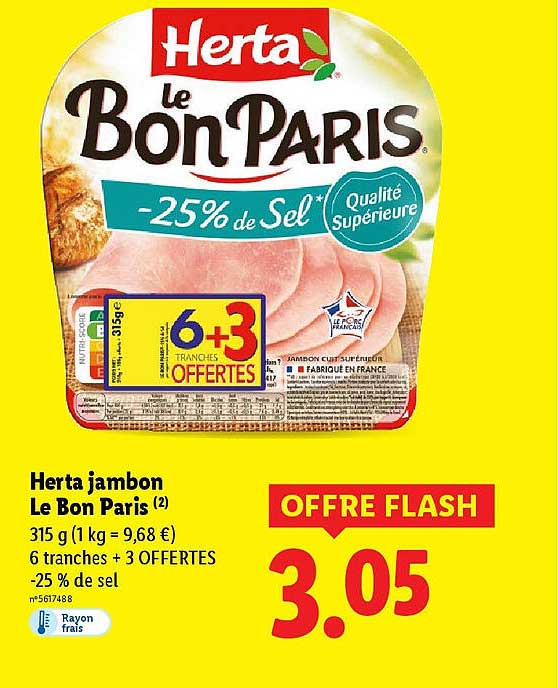 Offre de Herta Jambon Le Bon Paris chez Lidl