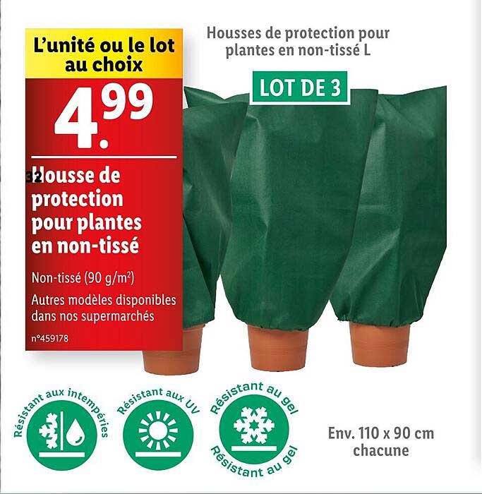 Découvrez dès maintenant la offre Housses de protection pour plantes en non-tissé L LOT DE 3 dans le catalogue de Lidl. Cette offre est valable du 17/10/2024 au 21/10/2024.