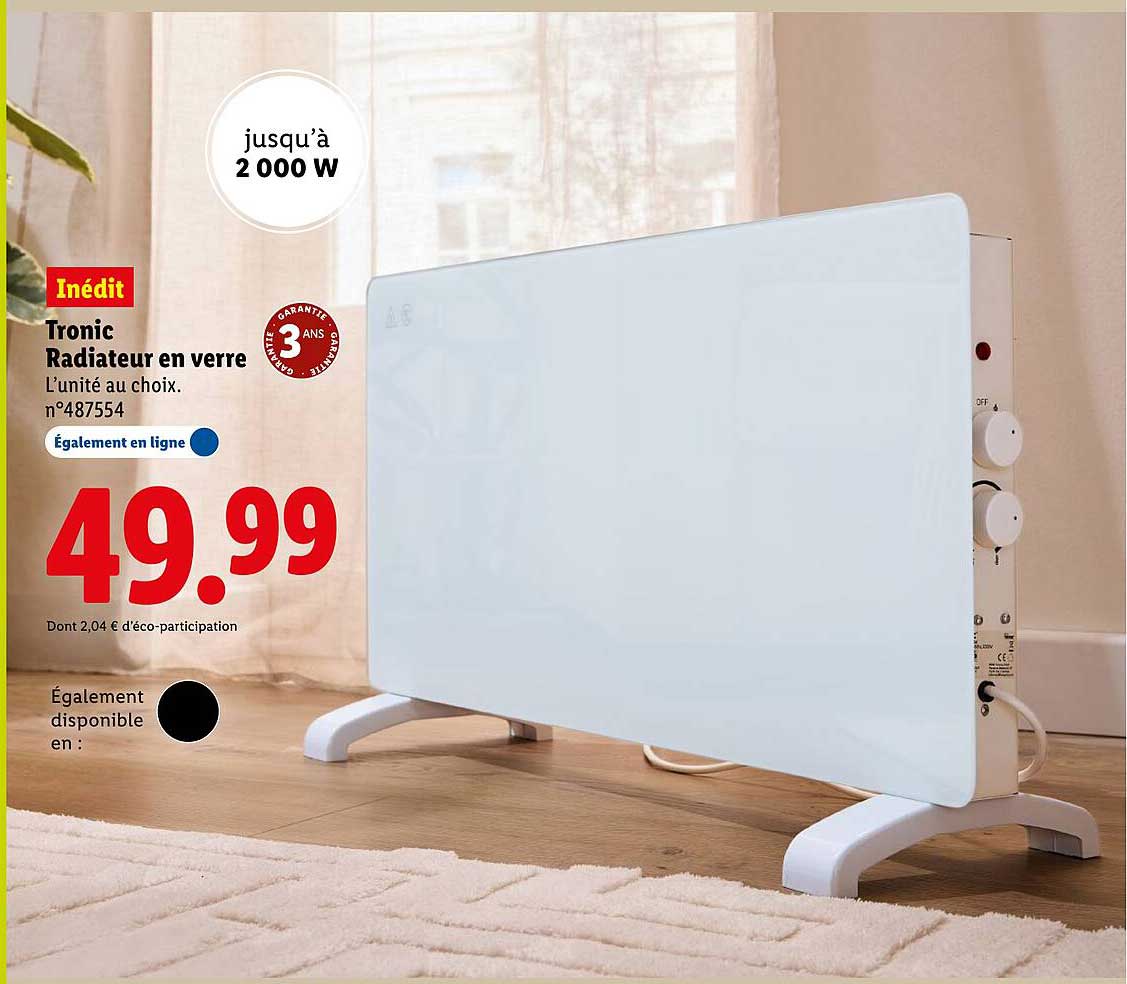 Découvrez dès maintenant la offre Inédit Tronic Radiateur en verre dans le catalogue de Lidl. Cette offre est valable du 13/10/2025 au 16/10/2025.