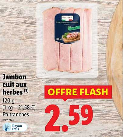 Découvrez l'offre de Jambon Cuit Aux Herbes chez Lidl! Cette offre fantastique est maintenant disponible dans le nouveau catalogue de Lidl. Profitez de cette occasion et économisez considérablement sur votre achat.
