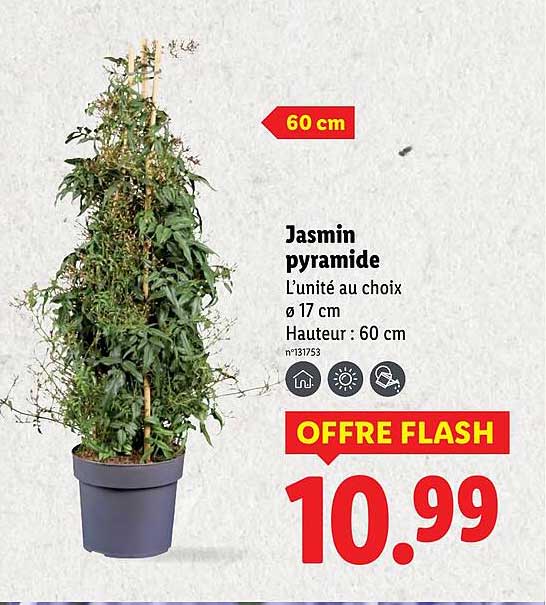 Découvrez l'offre de Jasmin Pyramide chez Lidl! Cette offre fantastique est maintenant disponible dans le nouveau catalogue de Lidl. Profitez de cette occasion et économisez considérablement sur votre achat.