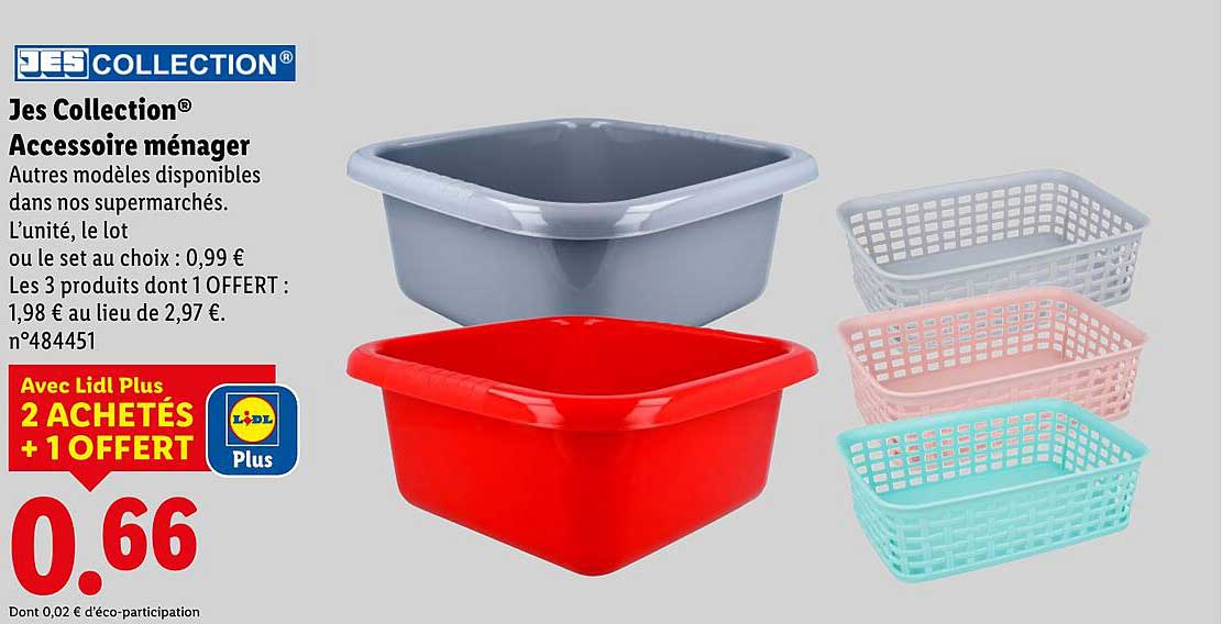 Découvrez le lot d’accessoires ménagers Jes Collection proposé par Lidl, une occasion à ne pas manquer ! Disponible du 2 au 6 octobre 2025, cette offre s’adresse à tous ceux qui souhaitent allier organisation et économies. Parfait pour les tâches quotidiennes, cet ensemble coloré et pratique transforme l'entretien de votre maison en un jeu d'enfant.