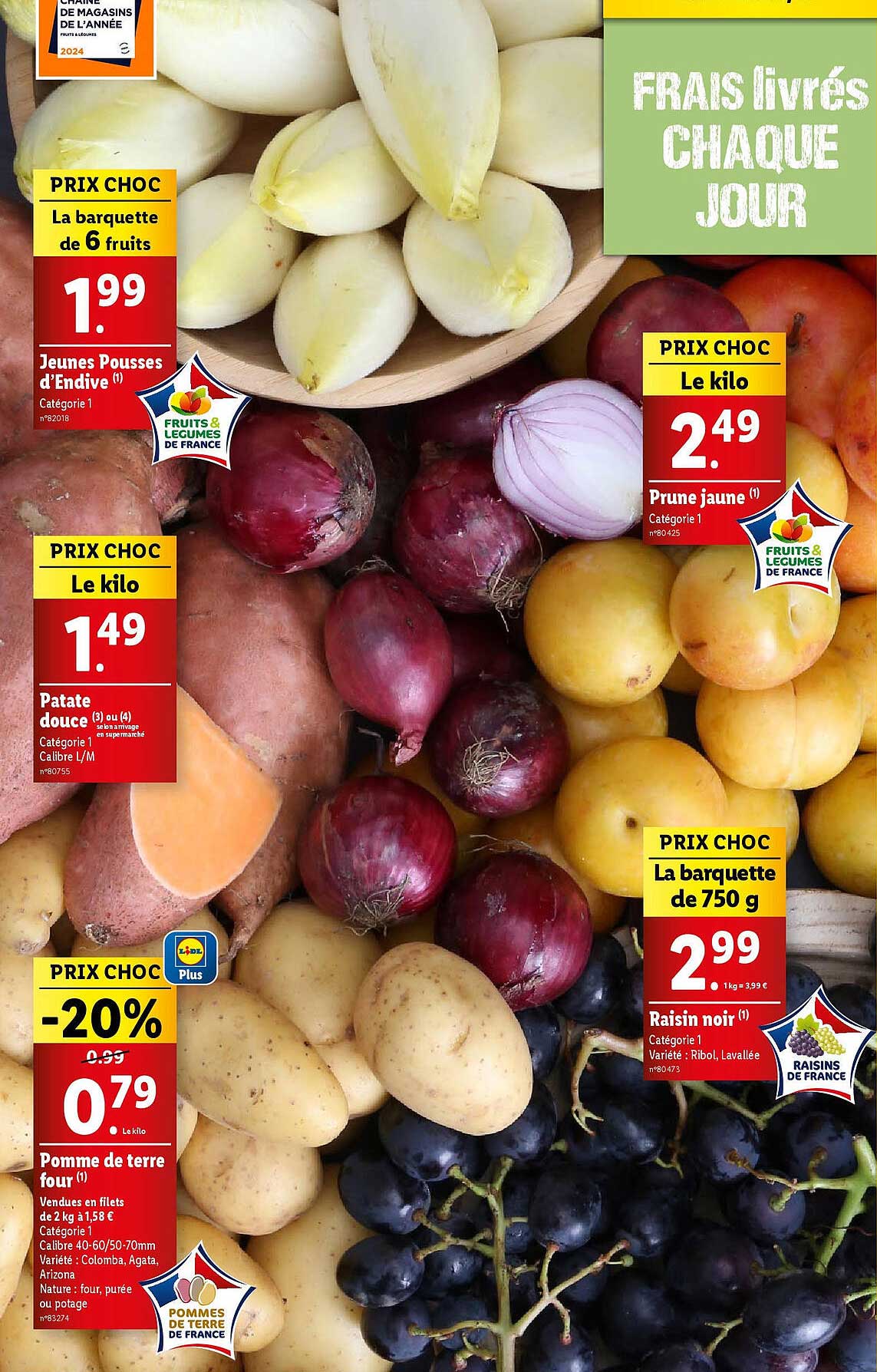 Offre de Jeunes Pousses D'endive Prune Jaune Patate Douce Pomme De Terre Four Raisin Noir chez Lidl