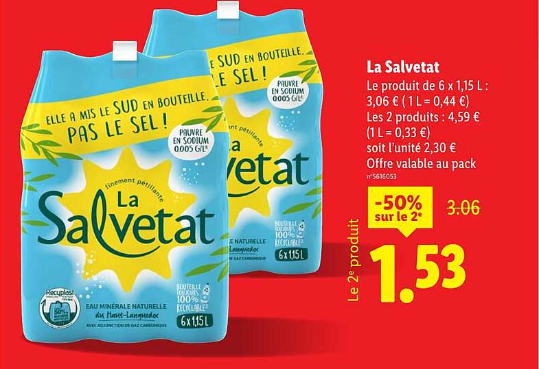 Découvrez l'offre de La Salvetat chez Lidl! Cette offre fantastique est maintenant disponible dans le nouveau catalogue de Lidl. Profitez de cette occasion et économisez considérablement sur votre achat.