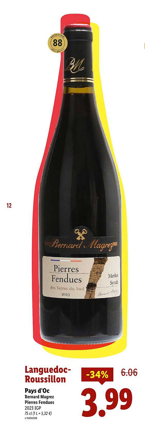 Découvrez dès maintenant la offre Languedoc-Roussillon Pays d’Oc Bernard Magrez Pierres Fendues 2023 IGP dans le catalogue de Lidl. Cette offre est valable du 06/03/2025 au 31/03/2025.
