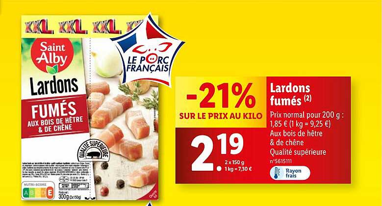 Découvrez l'offre de Lardons Fumés chez Lidl! Cette offre fantastique est maintenant disponible dans le nouveau catalogue de Lidl. Profitez de cette occasion et économisez considérablement sur votre achat.