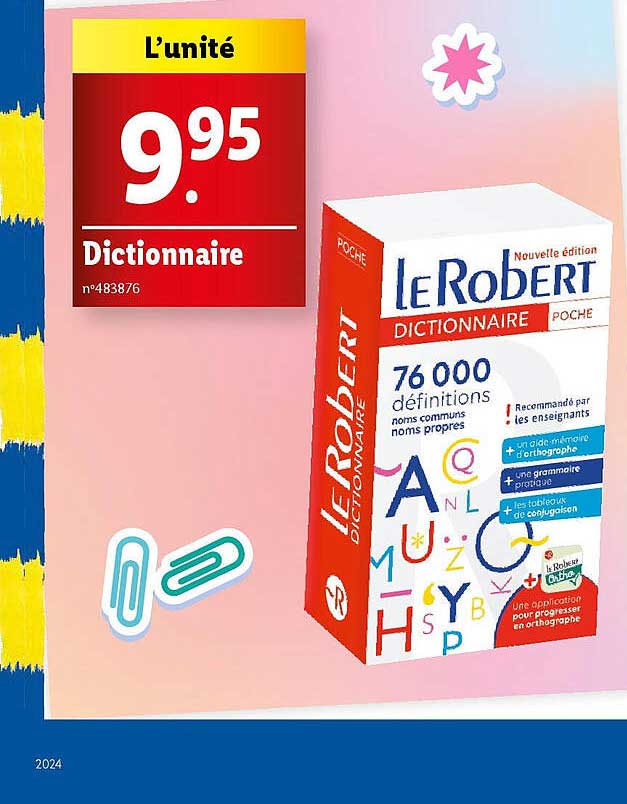 Découvrez dès maintenant la offre Le Robert DICTIONNAIRE POCHE dans le catalogue de Lidl. Cette offre est valable du 15/08/2024 au 19/08/2024.