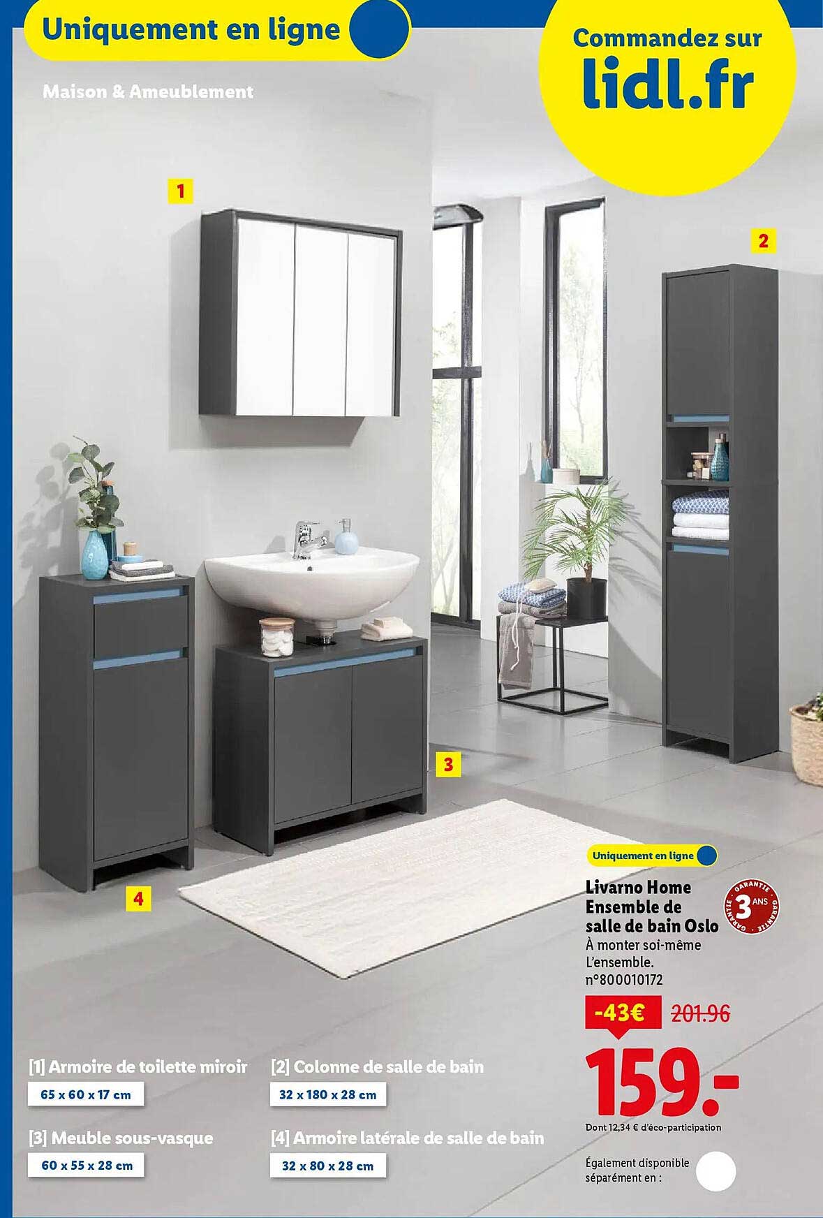 Si vous êtes à la recherche d'un ensemble de salle de bain élégant et fonctionnel, ne manquez pas cette offre exceptionnelle sur les produits Livarno Home, valable du 27 au 30 octobre 2025. Cet ensemble promet d'apporter modernité et rangement à votre espace, tout en étant proposé à un prix réduit.