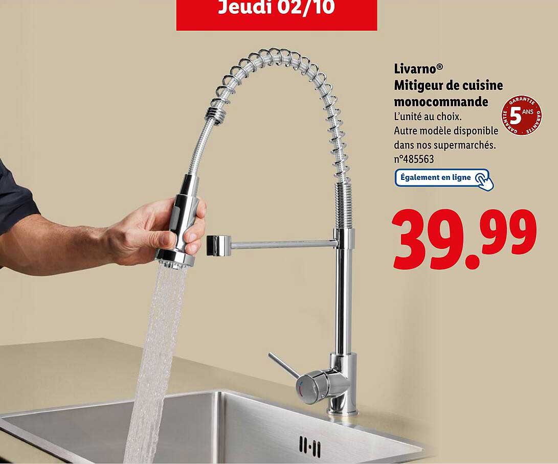 Découvrez dès maintenant la offre Livarno® Mitigeur de cuisine monocommande dans le catalogue de Lidl. Cette offre est valable du 02/10/2025 au 06/10/2025.