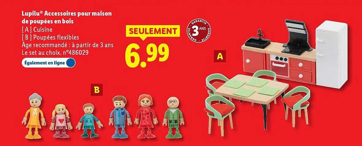 Découvrez dès maintenant la offre Lupilu® Accessoires pour maison de poupées en bois dans le catalogue de Lidl. Cette offre est valable du 27/10/2025 au 30/10/2025.