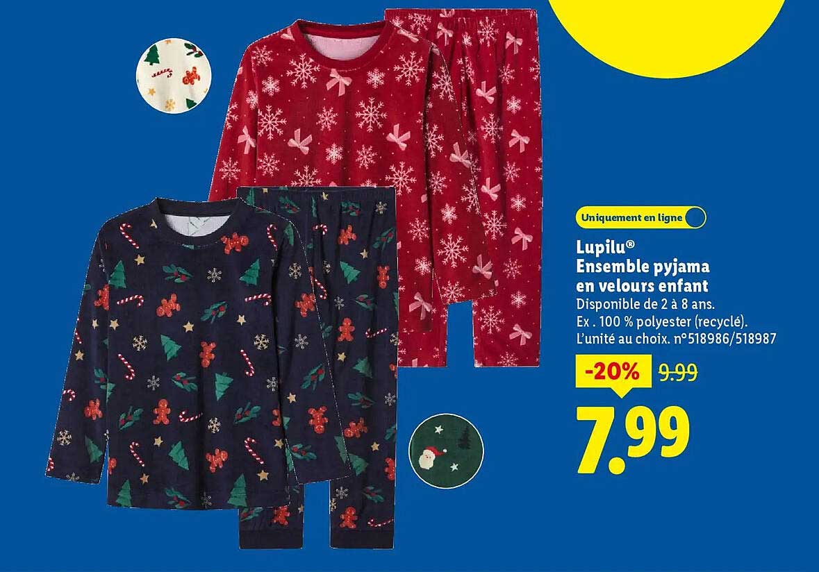 Découvrez dès maintenant la offre Lupilu® Ensemble pyjama en velours enfant dans le catalogue de Lidl. Cette offre est valable du 27/10/2025 au 30/10/2025.