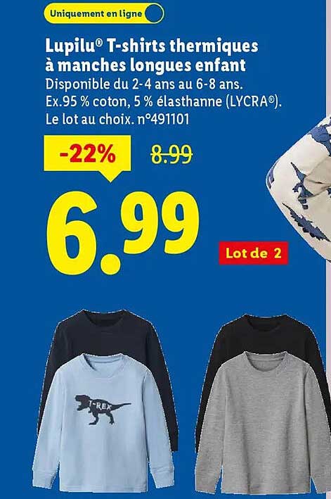 Les T-shirts thermiques Lupilu® à manches longues pour enfants sont désormais disponibles en promotion. Profitez de cette offre valable du 27 au 30 octobre 2025 pour habiller vos petits avec style et confort, tout en faisant des économies !