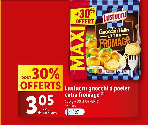 Découvrez l'offre de Lustucru Gnocchi À Poêler Extra Fromage chez Lidl! Cette offre fantastique est maintenant disponible dans le nouveau catalogue de Lidl. Profitez de cette occasion et économisez considérablement sur votre achat.