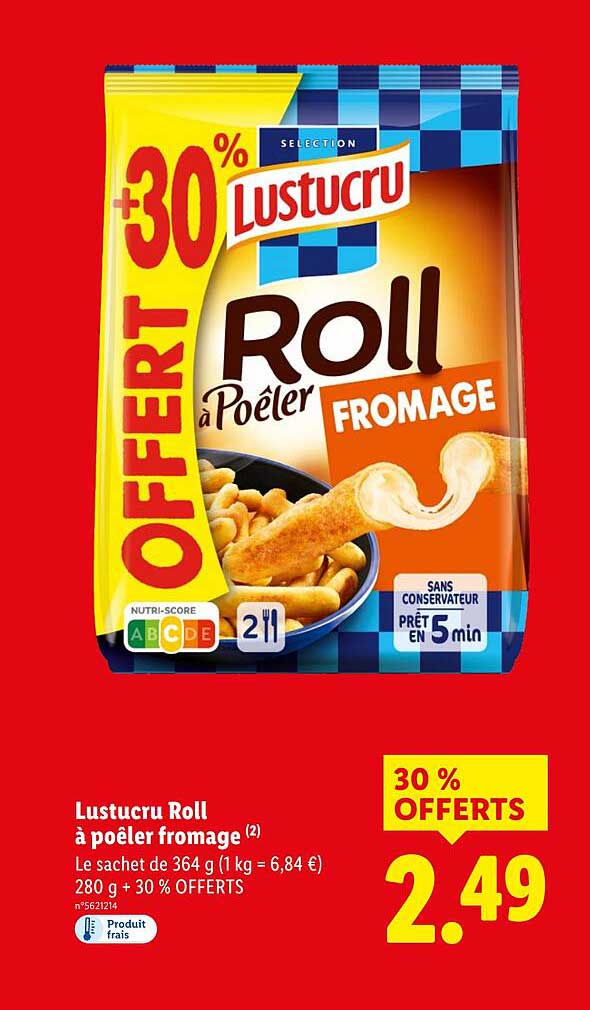 Découvrez dès maintenant la offre Lustucru Roll à poêler fromage dans le catalogue de Lidl. Cette offre est valable du 06/02/2025 au 12/02/2025.