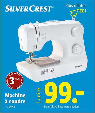 Découvrez dès maintenant la offre Machine à coudre dans le catalogue de Lidl. Cette offre est valable du 27/03/2025 au 02/04/2025.