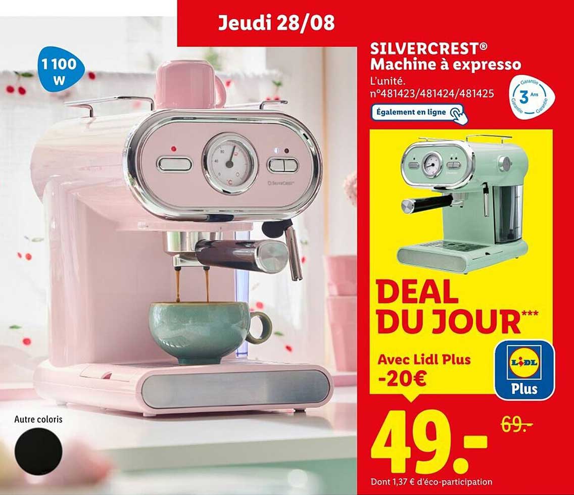 Pour tous les amateurs de café, Lidl vous propose une offre exceptionnelle sur la machine à expresso SILVERCREST®. Disponible du 25 au 28 août 2025, cette machine vous permettra d'apprécier un café digne des meilleures cafés. C'est l'occasion rêvée de déguster vos boissons préférées à la maison.