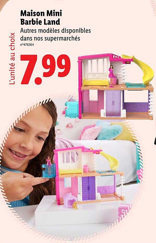 Découvrez dès maintenant la offre Maison Mini Barbie Land dans le catalogue de Lidl. Cette offre est valable du 14/07/2025 au 17/07/2025.