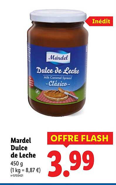 Découvrez une délicieuse promotion sur le Mardel Dulce de Leche, cette pâte à tartiner au caramel qui fond dans la bouche. Pour une durée limitée, profitez de ce produit savoureux à un prix défiant toute concurrence. Que ce soit pour vos petits-déjeuners, vos desserts ou vos collations, cette offre est à ne pas manquer !