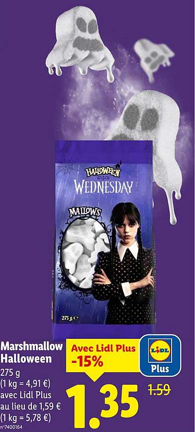 Découvrez dès maintenant la offre Marshmallow Halloween dans le catalogue de Lidl. Cette offre est valable du 13/10/2025 au 16/10/2025.