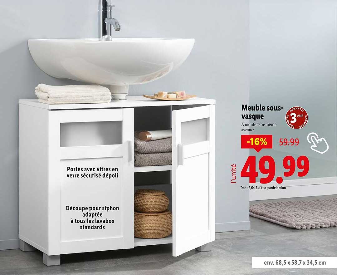 Découvrez l'offre de Meuble Sous-Vasque chez Lidl! Cette offre fantastique est maintenant disponible dans le nouveau catalogue de Lidl. Profitez de cette occasion et économisez considérablement sur votre achat.