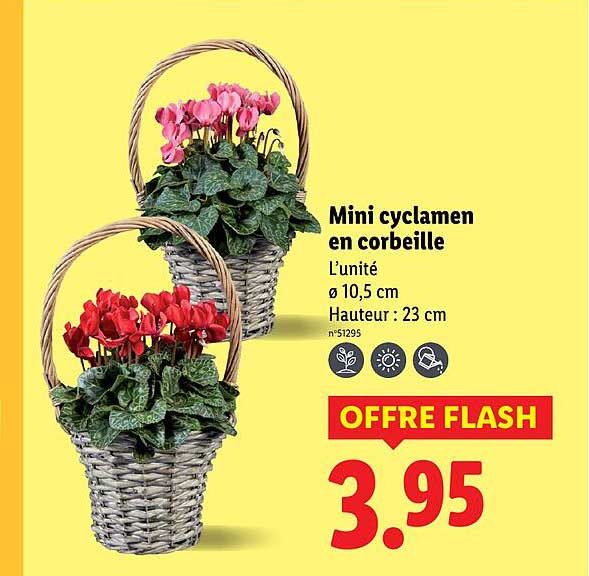 Découvrez dès maintenant la offre Mini cyclamen en corbeille dans le catalogue de Lidl. Cette offre est valable du 06/11/2025 au 12/11/2025.