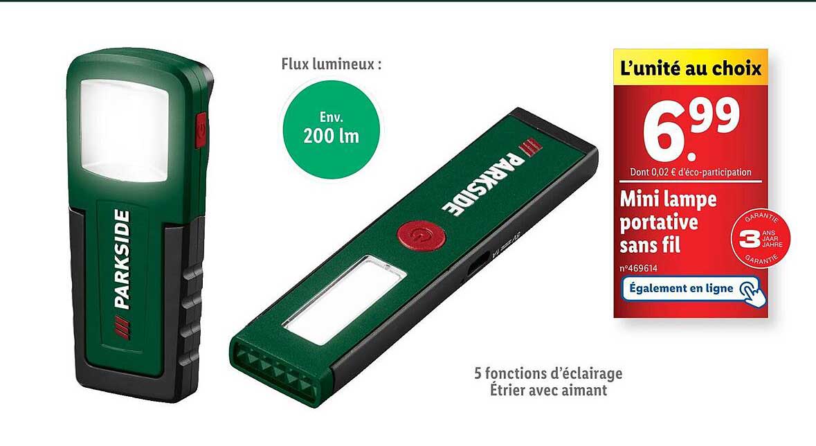 Découvrez l'offre de Mini Lampe Portative Sans Fil chez Lidl! Cette offre fantastique est maintenant disponible dans le nouveau catalogue de Lidl. Profitez de cette occasion et économisez considérablement sur votre achat.