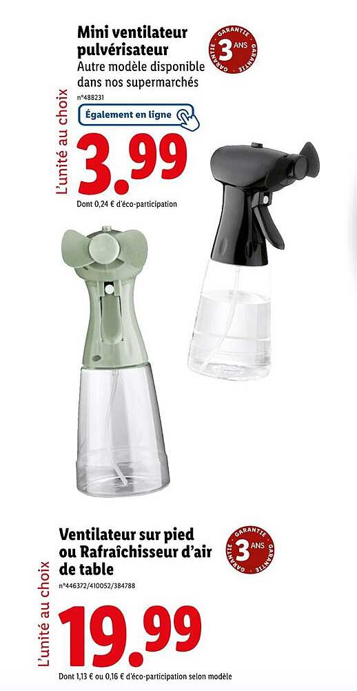 Découvrez dès maintenant la offre Mini ventilateur pulvérisateur dans le catalogue de Lidl. Cette offre est valable du 05/06/2025 au 09/06/2025.
