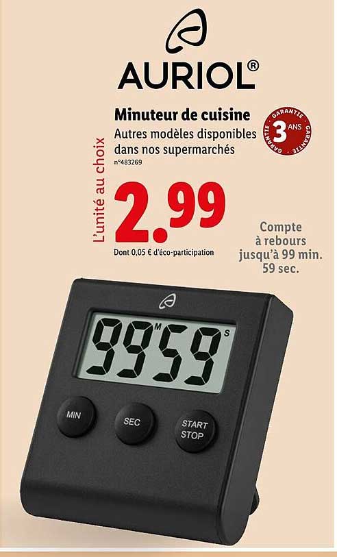 Proposé au prix attractif de 2,99 €, cette offre représente une économie substantielle par rapport aux minuteurs de cuisine traditionnels. Avec un coût permettant de vous faire gagner du temps et de réduire les erreurs en cuisine, c'est l'occasion rêvée de le rajouter à vos ustensiles.