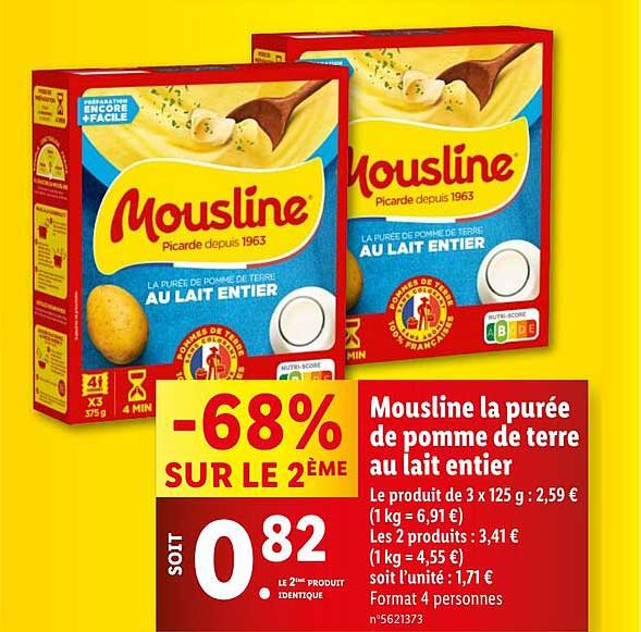 Offre de Mousline La Purée De Pomme De Terre Au Lait Entier chez Lidl