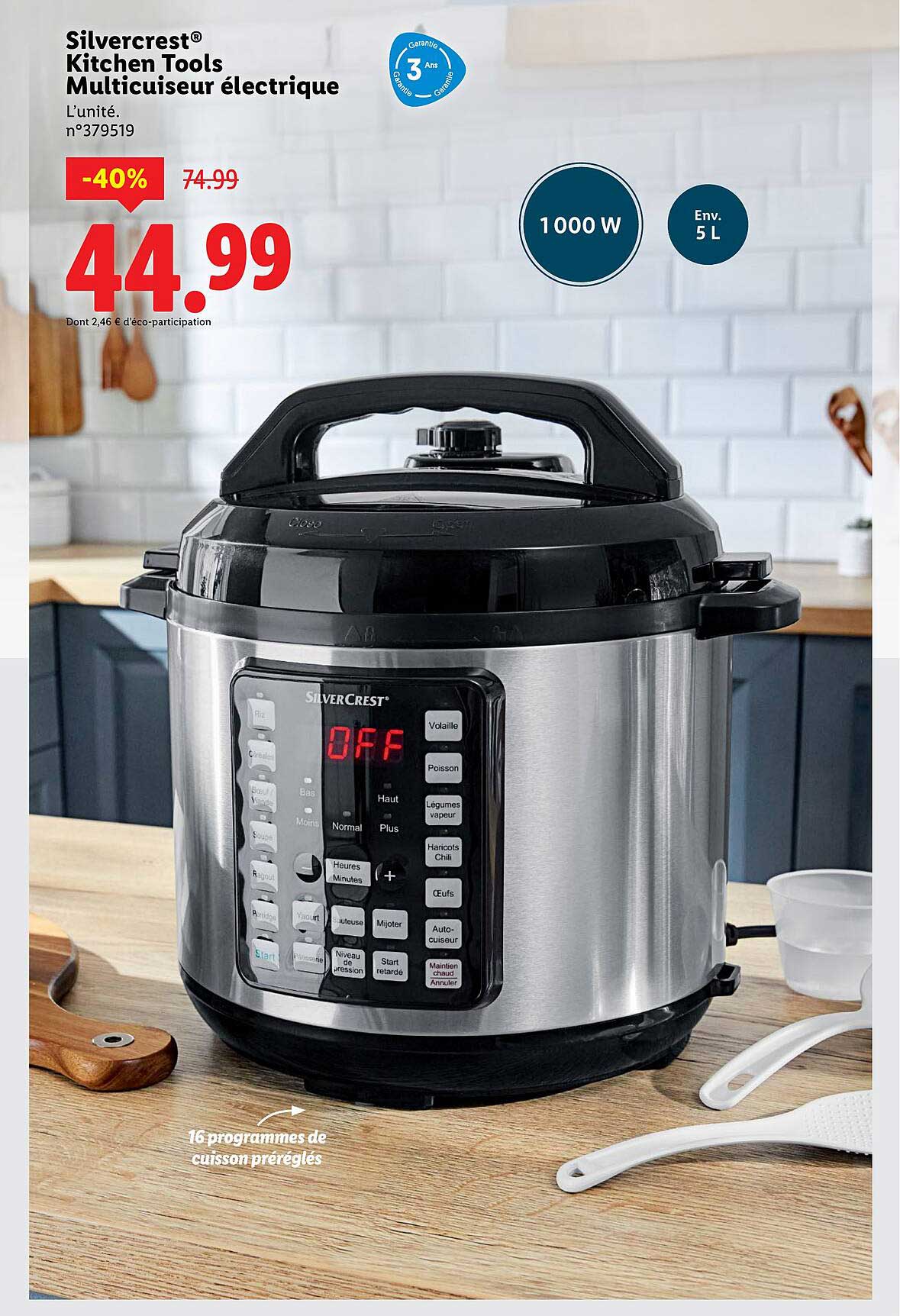 Découvrez dès maintenant la offre Multicuiseur électrique Silvercrest® dans le catalogue de Lidl. Cette offre est valable du 25/09/2025 au 29/09/2025.