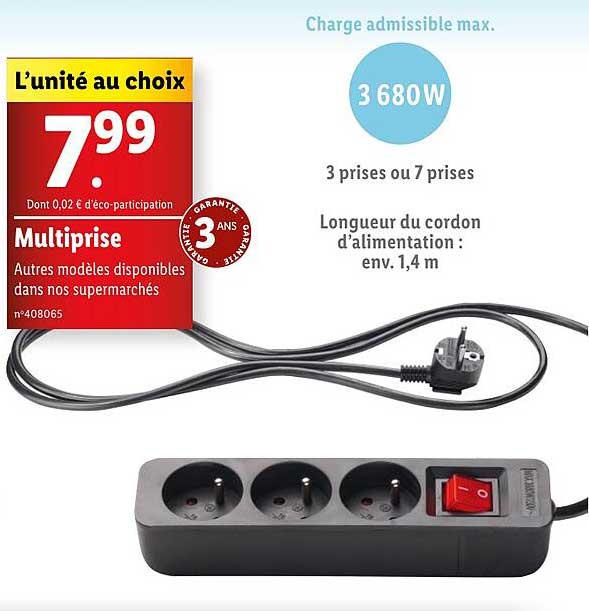 Découvrez l'offre de Multiprise chez Lidl! Cette offre fantastique est maintenant disponible dans le nouveau catalogue de Lidl. Profitez de cette occasion et économisez considérablement sur votre achat.