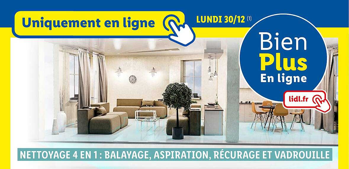 Découvrez dès maintenant la offre NETTOYAGE 4 EN 1 : BALAYAGE, ASPIRATION, RÉCUPÉRATION ET VADROUILLE dans le catalogue de Lidl. Cette offre est valable du 26/12/2024 au 31/12/2024.