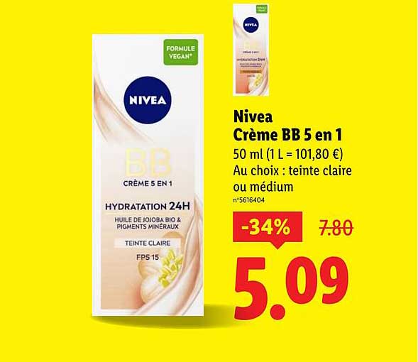 Découvrez l'offre de Nivea Crème Bb 5 En 1 chez Lidl! Cette offre fantastique est maintenant disponible dans le nouveau catalogue de Lidl. Profitez de cette occasion et économisez considérablement sur votre achat.