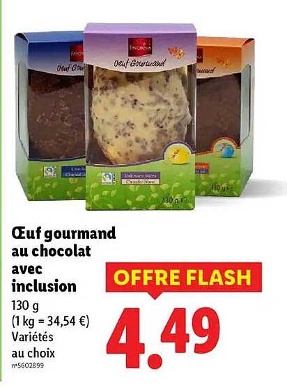 Découvrez dès maintenant la offre Œuf gourmand au chocolat avec inclusion dans le catalogue de Lidl. Cette offre est valable du 10/04/2025 au 16/04/2025.