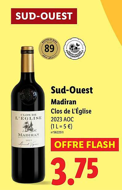 Profitez d'une opportunité exceptionnelle avec le vin Madiran Clos de L'Église, une cuvée de 2023 AOC, mise en avant dans ce catalogue Lidl. À un prix incroyable, ce vin du Sud-Ouest promet d'élever vos repas et vos moments de convivialité. Que ce soit pour un dîner en tête-à-tête ou une soirée entre amis, cette offre séduira les amateurs de vin.