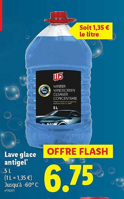 À 6,75 € pour 5 litres, cette offre représente une excellente économie comparée aux prix habituels sur le marché. En choisissant ce produit, vous faites le bon choix tout en préservant votre budget. Comparé à d'autres lave glaces disponibles, celui-ci vous assure un excellent rapport qualité-prix.