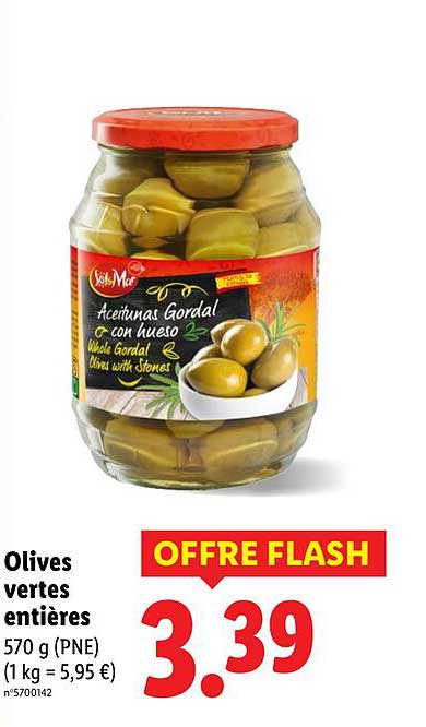 Découvrez dès maintenant la offre Olives vertes entières dans le catalogue de Lidl. Cette offre est valable du 24/04/2025 au 29/04/2025.