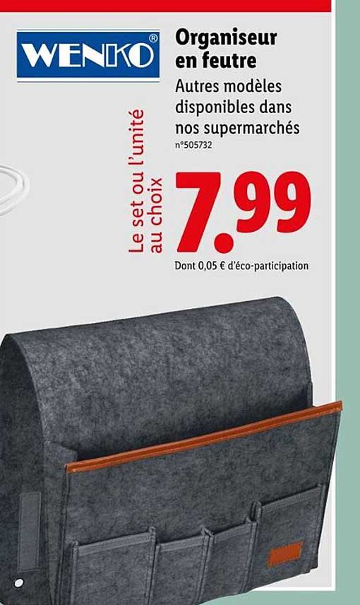 Découvrez dès maintenant la offre Organisateur en feutre dans le catalogue de Lidl. Cette offre est valable du 31/07/2025 au 04/08/2025.