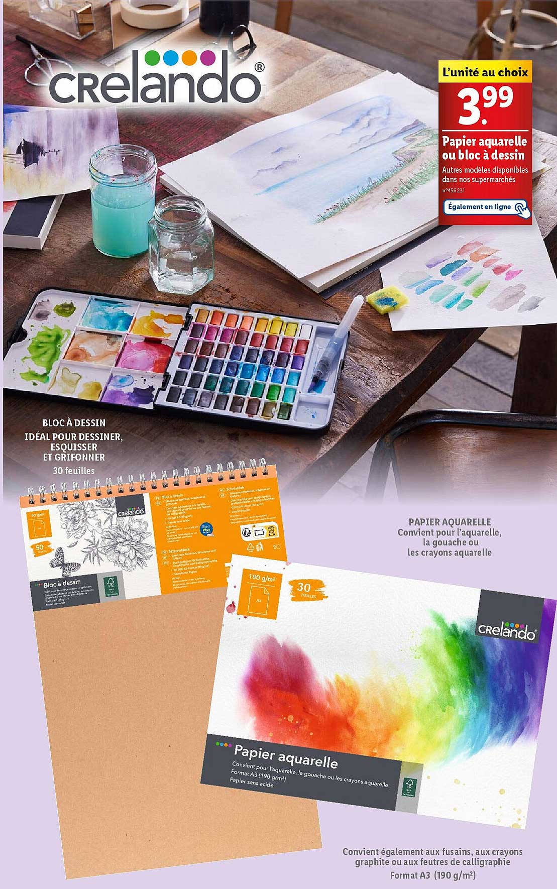 Découvrez l'offre de Papier Aquarelle Ou Bloc À Dessin chez Lidl! Cette offre fantastique est maintenant disponible dans le nouveau catalogue de Lidl. Profitez de cette occasion et économisez considérablement sur votre achat.