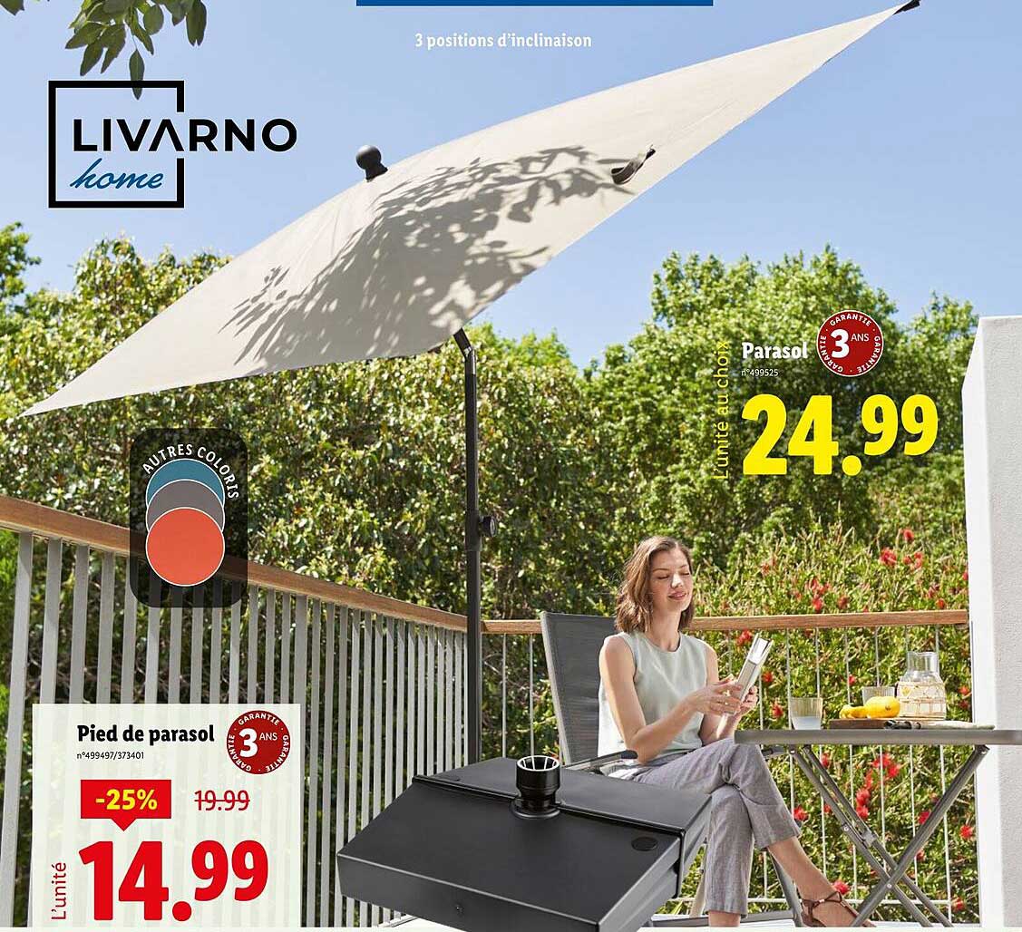 Découvrez dès maintenant la offre Parasol dans le catalogue de Lidl. Cette offre est valable du 28/04/2025 au 30/04/2025.