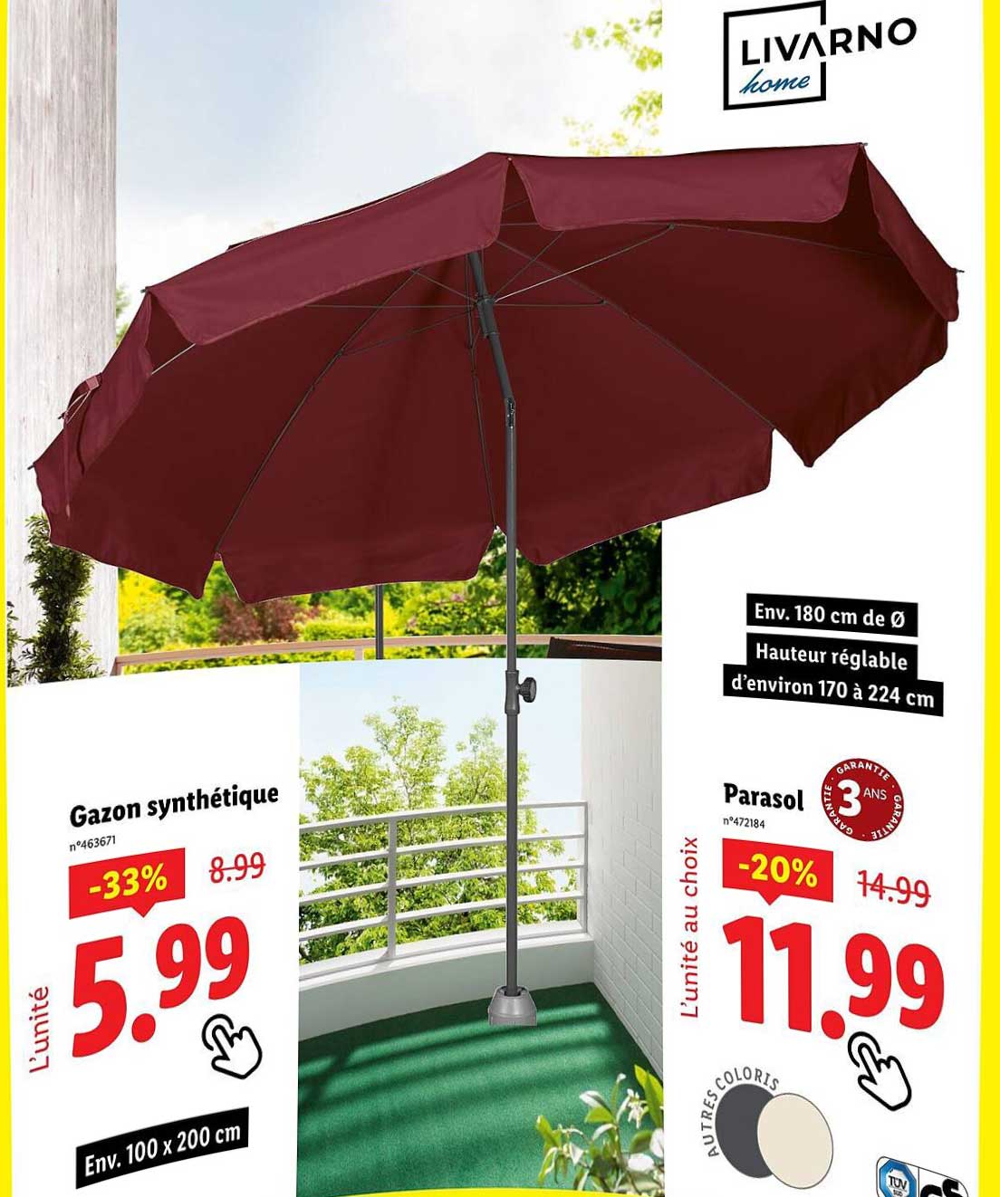 Découvrez dès maintenant la offre Parasol dans le catalogue de Lidl. Cette offre est valable du 12/06/2025 au 16/06/2025.