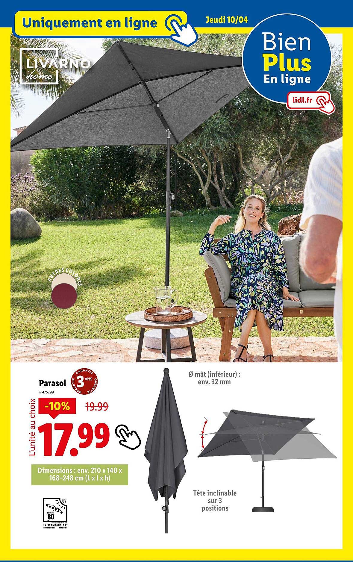 Découvrez dès maintenant la offre Parasol LIVARNO home dans le catalogue de Lidl. Cette offre est valable du 07/04/2025 au 10/04/2025.