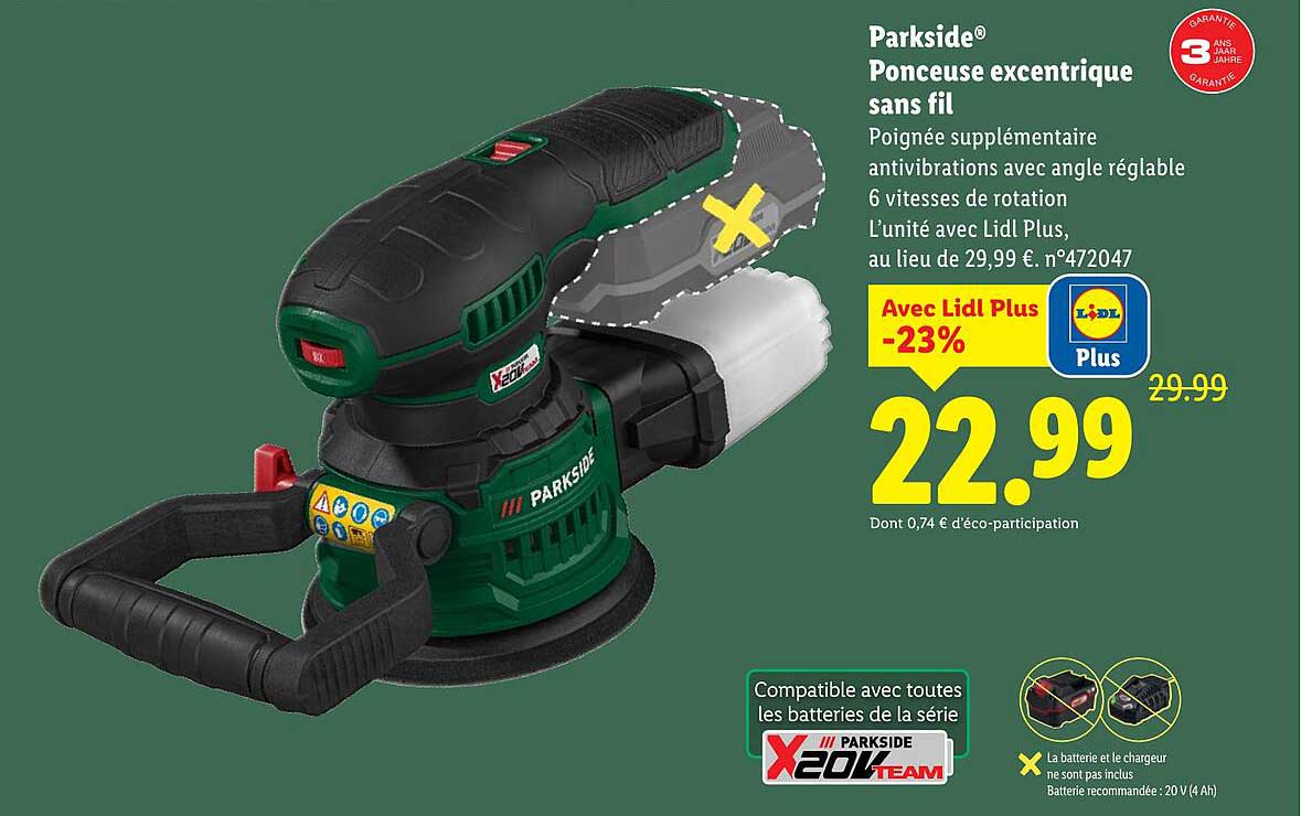 Découvrez dès maintenant la offre Parkside® Ponceuse excentrique sans fil dans le catalogue de Lidl. Cette offre est valable du 16/10/2025 au 20/10/2025.