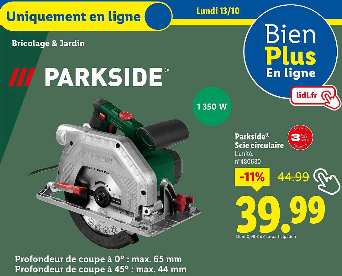 Découvrez dès maintenant la offre Parkside® Scie circulaire dans le catalogue de Lidl. Cette offre est valable du 13/10/2025 au 16/10/2025.