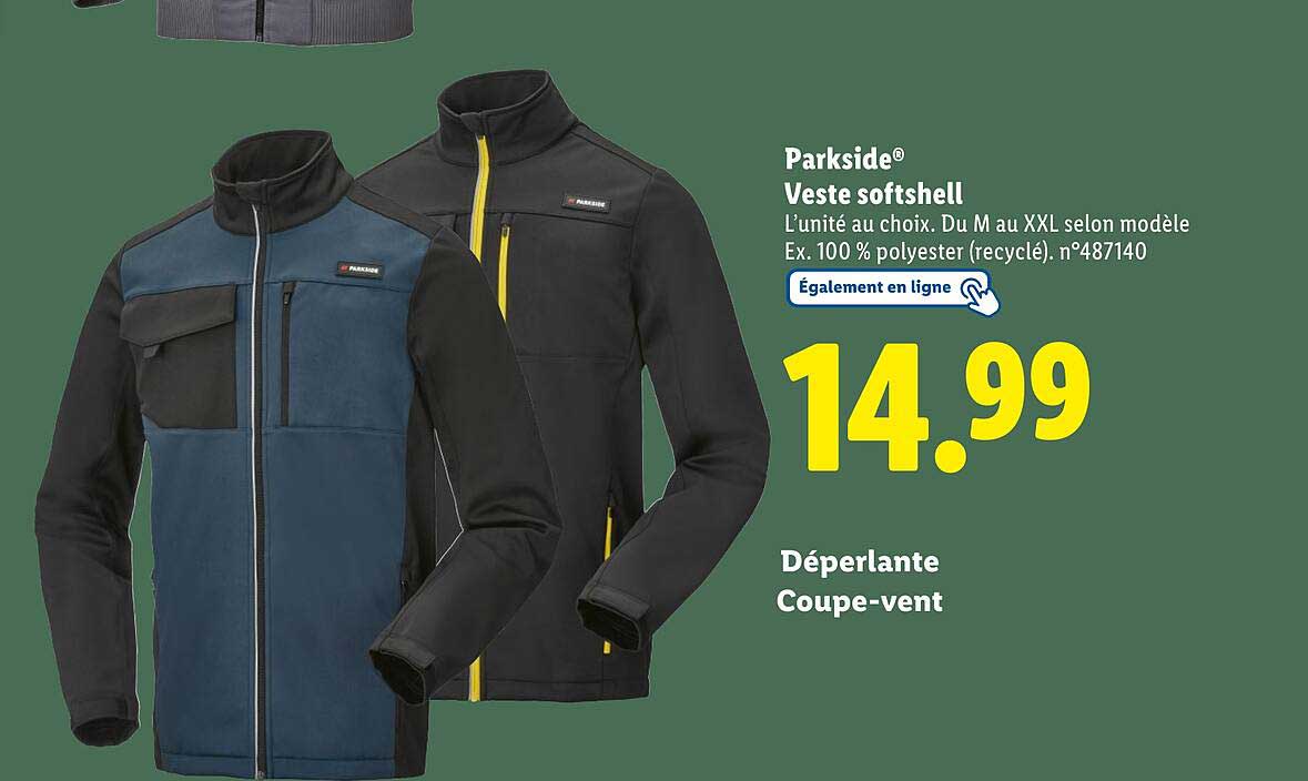 Découvrez la veste softshell Parkside®, un indispensable pour la saison automnale ! Conçue pour offrir confort et protection, cette veste est parfaite tant pour les activités en plein air que pour un usage quotidien. Ne manquez pas cette occasion d'acquérir un vêtement alliant praticité et style, tout en bénéficiant d'une promotion exclusive.