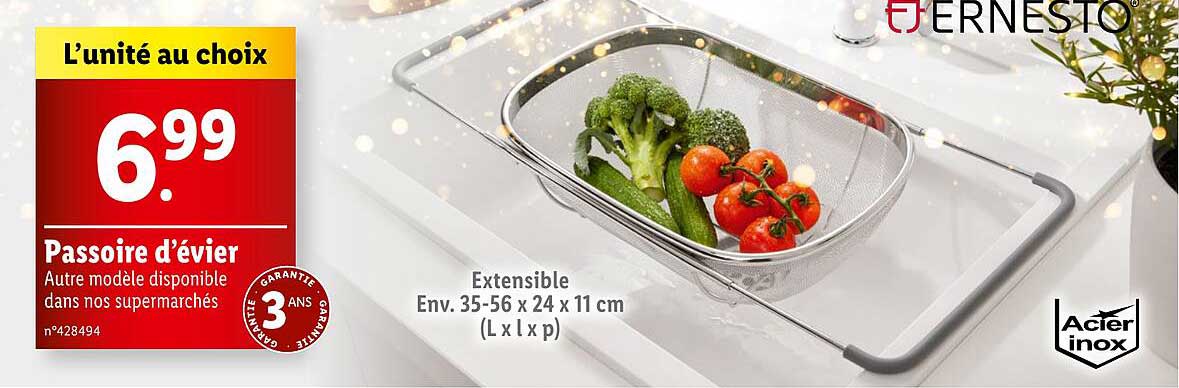 Découvrez l'offre de Passoire D’évier chez Lidl! Cette offre fantastique est maintenant disponible dans le nouveau catalogue de Lidl. Profitez de cette occasion et économisez considérablement sur votre achat.