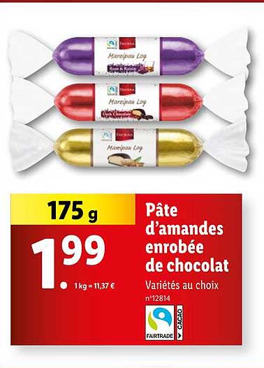 Offre de Pâte D’amandes Enrobée De Chocolat chez Lidl