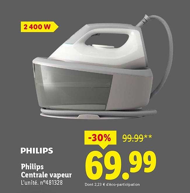 Découvrez dès maintenant la offre Philips Centrale vapeur dans le catalogue de Lidl. Cette offre est valable du 03/11/2025 au 06/11/2025.