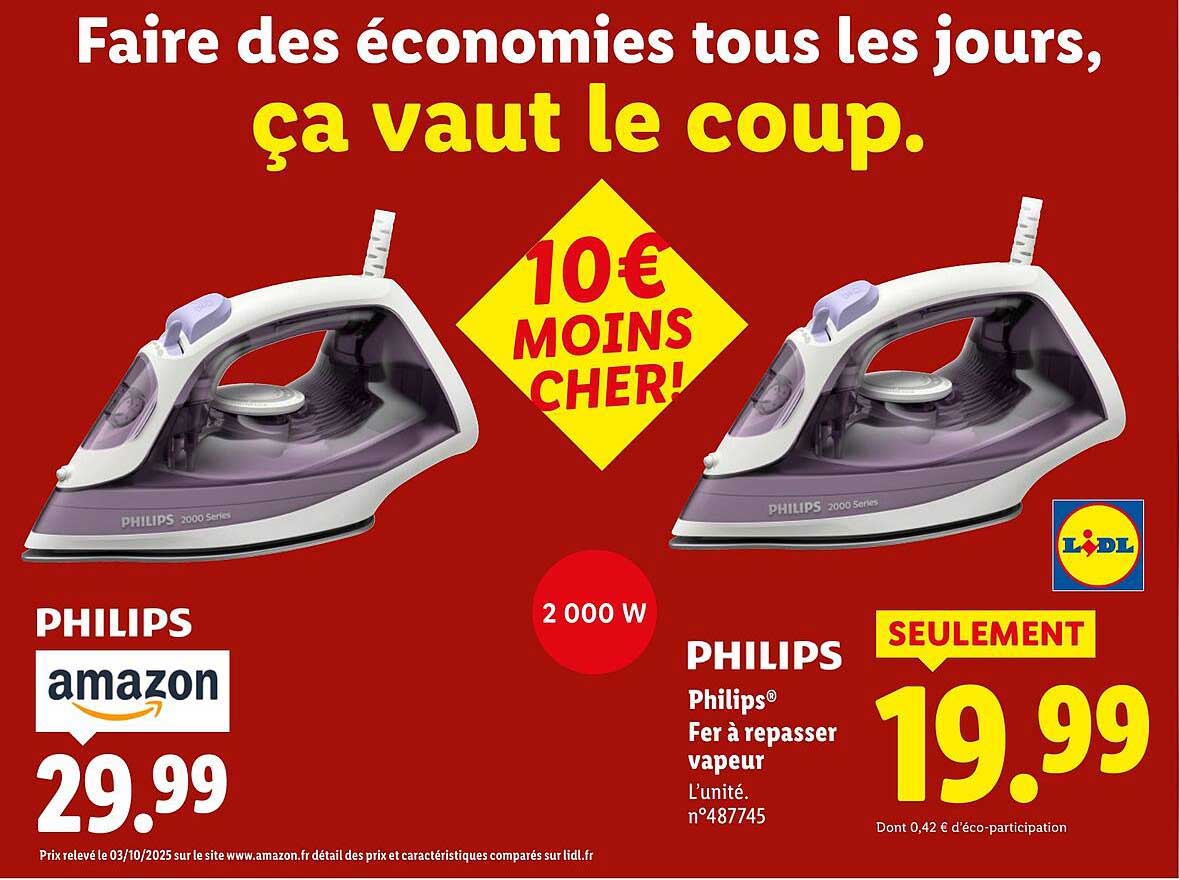 Découvrez le fer à repasser vapeur Philips® qui rendra vos séances de repassage beaucoup plus faciles et rapides! Bénéficiez d'une réduction exceptionnelle, car cette offre ne dure que quelques jours. Du 30 octobre au 3 novembre 2025, vous aurez la chance de vous procurer ce fer performant à un prix incroyable.