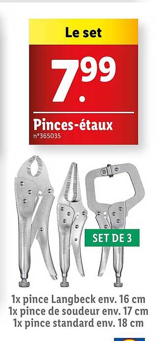 Découvrez l'offre de Pince-Étaux chez Lidl! Cette offre fantastique est maintenant disponible dans le nouveau catalogue de Lidl. Profitez de cette occasion et économisez considérablement sur votre achat.